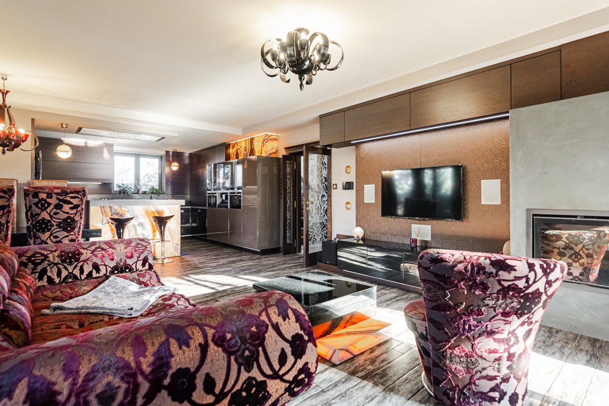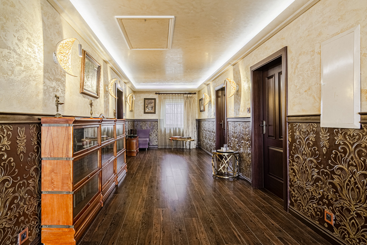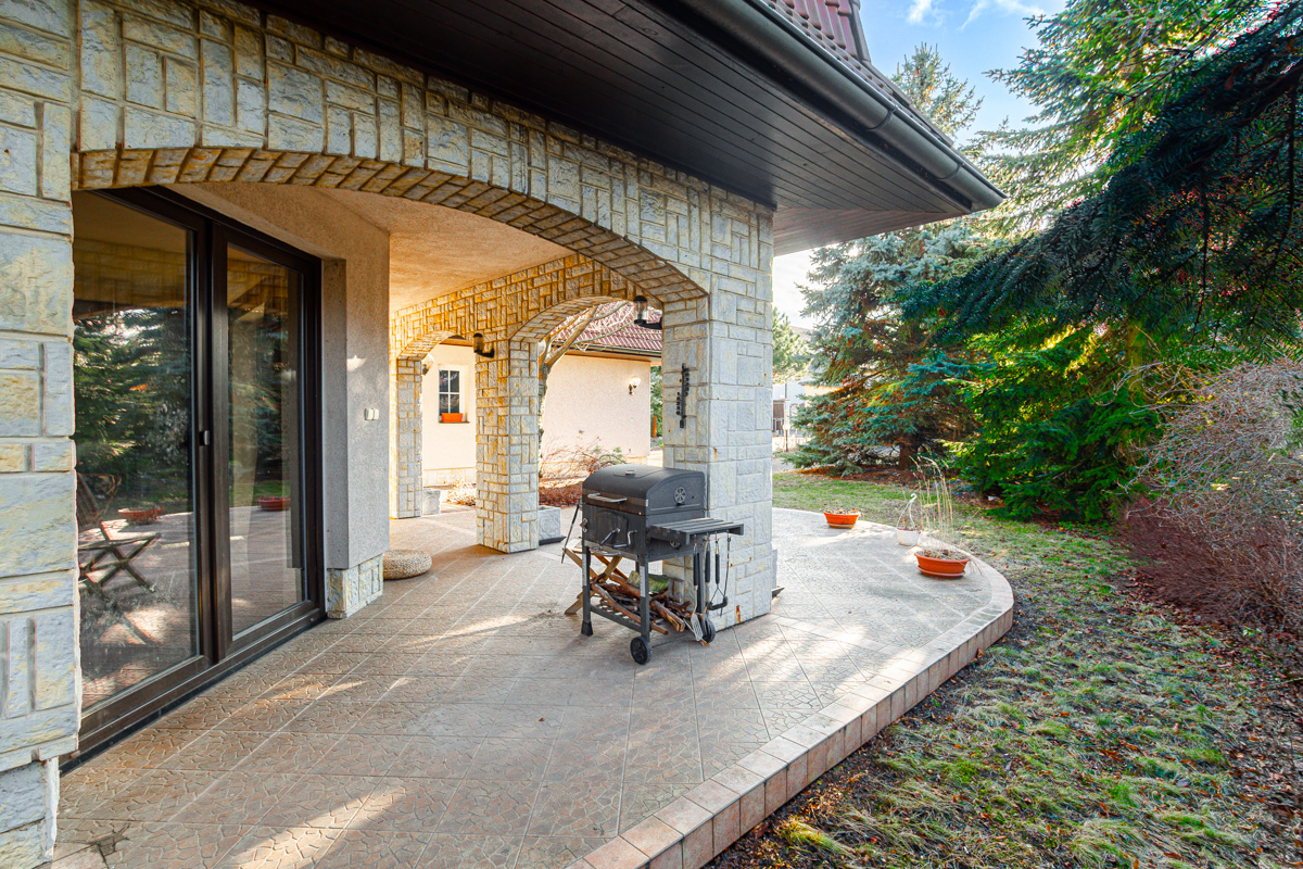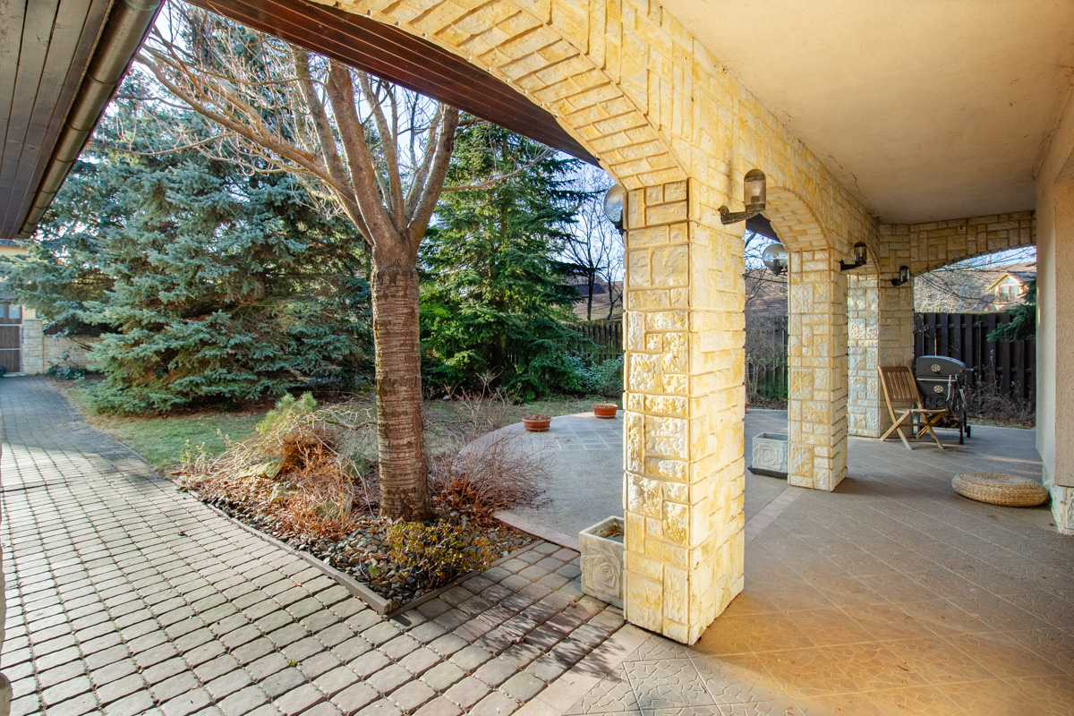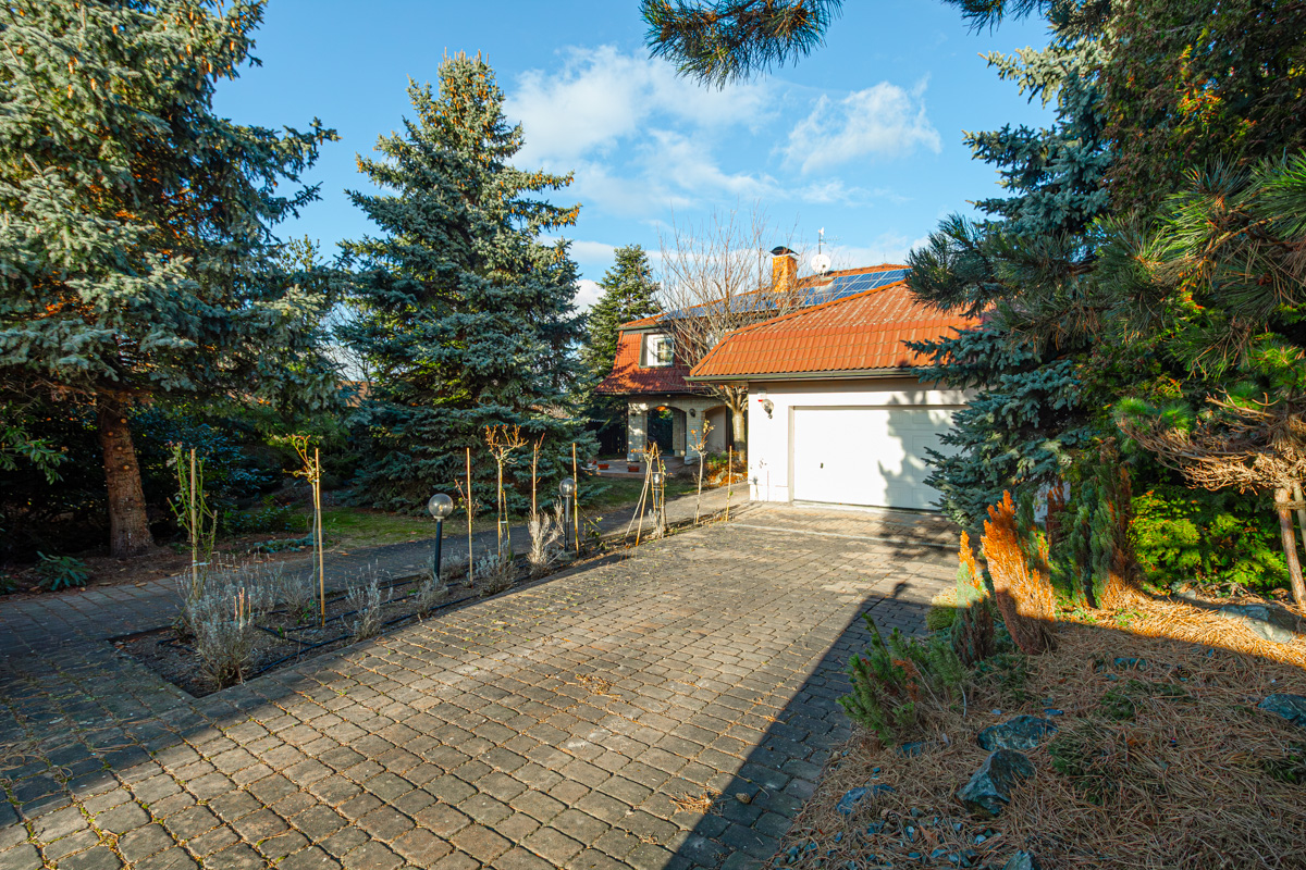 Při vstupu do domu vcházíte do velké prostorné chodby z které se dostanete do velkého prostoru, kde byl dříve vybudovaný byt 2+kk. Možné mít i jako kancelář nebo i jako velkou hernu. Dále po pravé straně z chodby vcházíte do technické místnosti, velké šatny a vchodem do garáže pro dvě auta. Dominantou domu je krásný prostorný obývací pokoj, který je propojen s kuch.koutem a výstupem na terasu se vzrostlou zahradou. Kuchyňská linka je vybavena moderními spotřebiči včetně zabudovaného kávovaru atd. tak i zadní samostatné komory. Velmi příjemnou atmosféru vám zajistí moderní krbové kamna nebo atypické podsvícení v kuchyňské lince. Po krásném masivním schodišti s velkým oknem vcházíte do prvního patra kde najdete čtyři prostorné pokoje, kde v jednom je samostatná koupelna se sprchovým koutem,rohovou vanou a WC, šatnou. V páté místnosti se nachází wellness se saunou, menší posilovnou, velkým sprchovým koutem a WC. V celém domě jsou nadstandardní prvky .Ohřev vody a podlahového vytápění celého domu zajišťuje tepelné čerpadlo a solární panely, které jsou umístěny na střeše. Dům je napojen na obecní kanalizaci a městskou vodu. Zahrada je velmi udržovaná a plná vzrostlých stromů a keřů, které zajistí nejen soukromí, ale také v letním období krásné posezení na terase. V obci je autobusová zastávka nedaleko domu s pravidelným spojením k metru Veleslavín, Bořislavka nebo i OC Šestka. Tento dům má tolik předností, které se ani nevejdou napsat. Vzletem k lokalitě tuto nabídku doporučujeme. Nutno vidět.