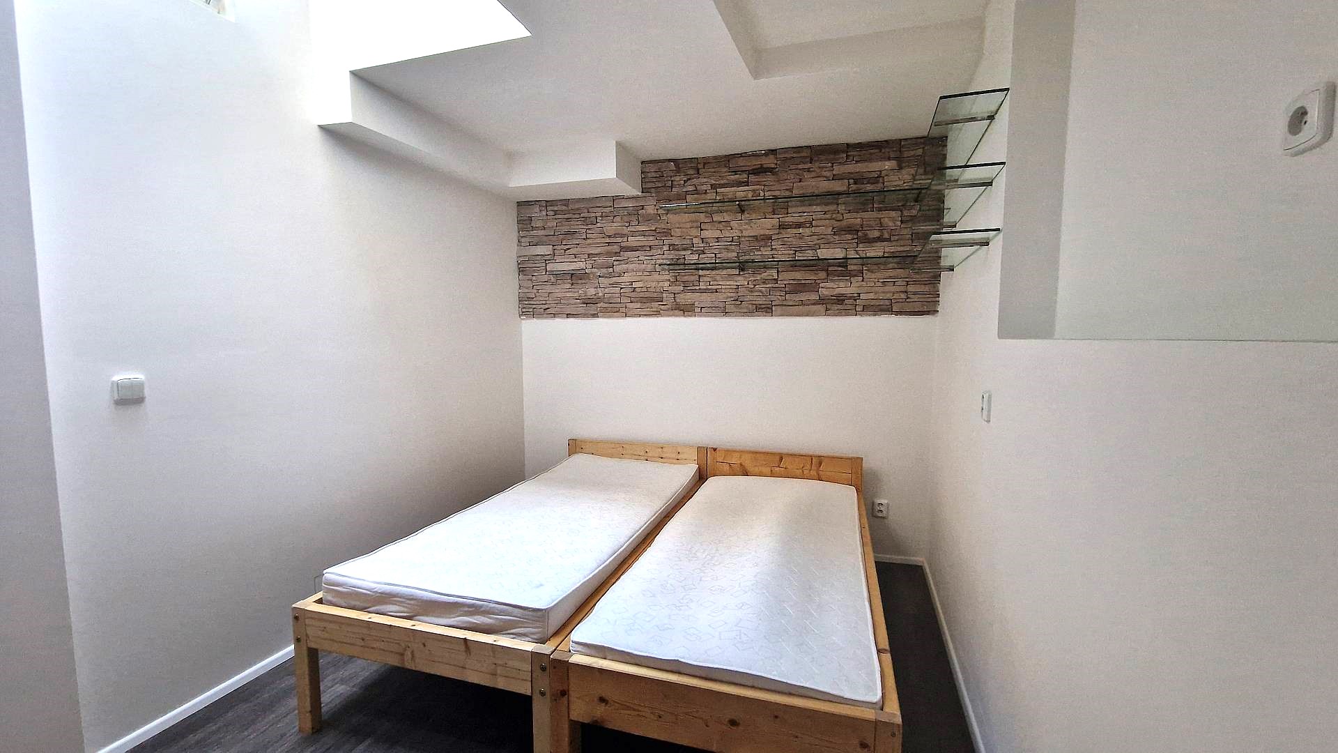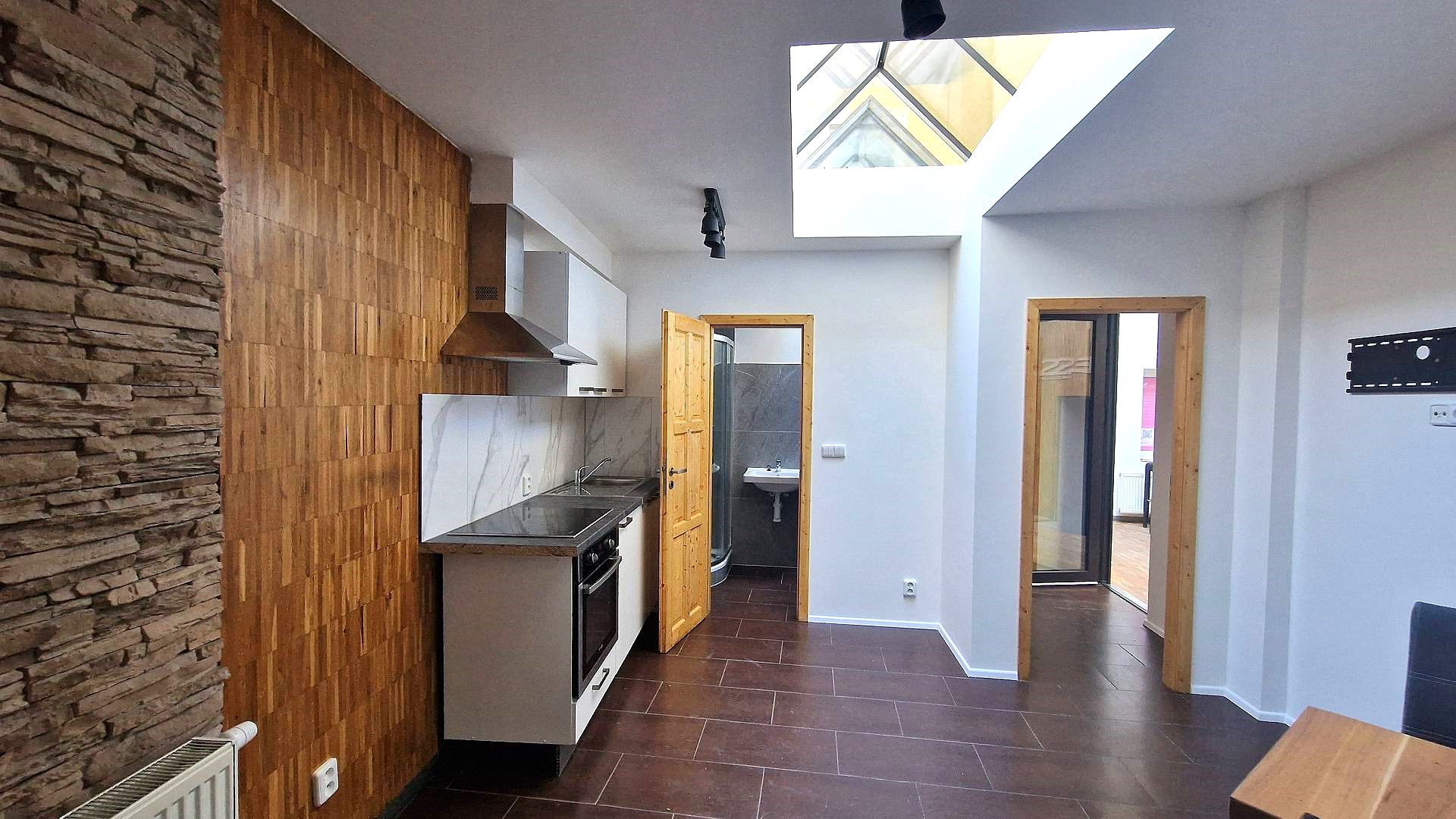Ve velmi pěkné lokalitě nabízíme k dlouhodobému pronájmu nově vybudovaný atypický ateliér v cihlovém domě 1+1 o celkové rozloze 38m2 který se nachází v přízemí cihlového domu, který je částečně vybaven : kuch.linka, elektrický sporák s horkovzdušnou troubou, digestoř, postele, police, jídelní stůl + židle. Byt je situován do klidného vnitrobloku. Na podlahách dlažba. Přímo naproti domu se nachází bus.stanice, večerka, pizzerie, cukrárna. V blízkosti Chaplinovo náměstí jsou supermarkety, restaurace, aquapark nebo také mnoho sportovních a areálů. Velmi dobré spojení busem jak na tram tak i pak na metro nebi i vlakové nádraží. Na své si přijdou milovníci turistiky a cyklistiky, prakticky téměř od domu můžete vyrazit na procházku do Prokopského údolí. Vzhledem k lokalitě tuto nabídku doporučujeme. Nutno vidět. Ihned k nastěhování. V poplatcích jsou zahrnuté veškeré služby včetně i záloh na energie. Vhodné pro pár.