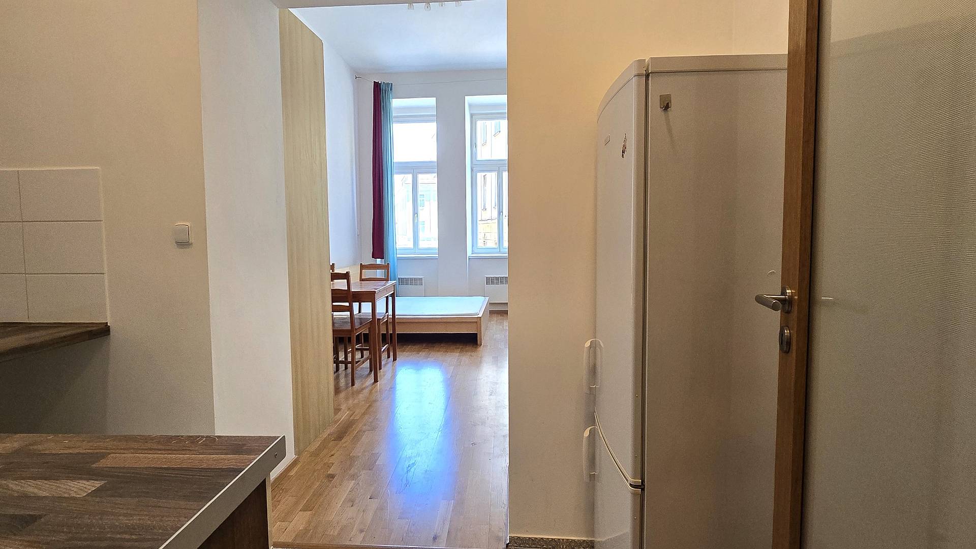 V širším centru nabízíme k dlouhodobému pronájmu menší cihlový byt 1+kk o celkové rozloze 30m2, který prošel rekonstrukcí nové kuch.linky, a dlažby , který se nachází v 1p bez výtahu a je plně vybaven : kuch.linka, varná deska, horkovzdušná trouba, lednice, pračka, šatní skříň, postel, sedačka, jídelní stůl + židle. Na podlahách plovoucí podlahy + dlažba. Koupelna se sprchovým koutem. Vytápění bytu zajišťuje elektrické topení a ohřev vody boiler. Byt se nachází v těsné blízkosti tram.stanice Lipanská na ul. Táboritská na Praze 3. V okolí veškerá občanská vybavenost. 3min chůzí Albert. 2 stanice metro Flora. Energie se převádí na nájemníka. Vhodné pro pár. Ihned k nastěhování. Vzhledem k lokalitě tuto nabídku doporučujeme.