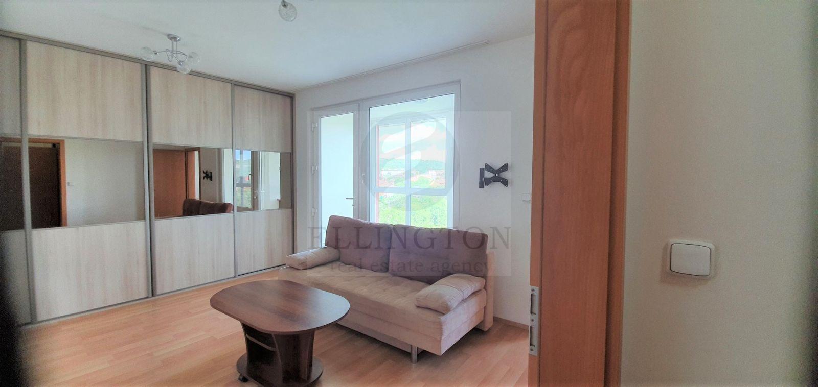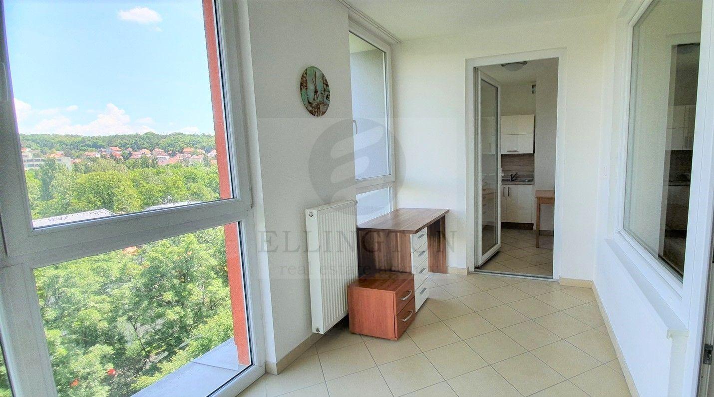 V pěkné a žádané lokalitě plné zeleně nabízíme k dlouhodobému pronájmu velmi pěkný atypický byt 1+1 s obytnou zasklenou lodžií - která se v současné době využívá jako ložnice nebo může i jako pracovna. Byt o celkové rozloze 40m2 je částečně vybaven : kuch.linka, varna deska, lednice, pračka, prac.stůl, velká vest.skříň. V obývacím pokoji se nachází prostorná vest.skříň tak i v předsíni, koupelna se sprchovým koutem, společné WC, pračka. Na podlahách plovoucí podlaha + dlažba. K bytu patří parkovací stání a velice prostorný sklep. Byt je k nastěhování od 1.7. - prohlídky možné. Vzhledem k lokalitě tuto nabídku doporučujeme. Velmi dobré spojení do centra. Energie se převádí na nájemníka. Kauce ve výši dvou nájmu, která je možná rozdělit na dvě části + provize.