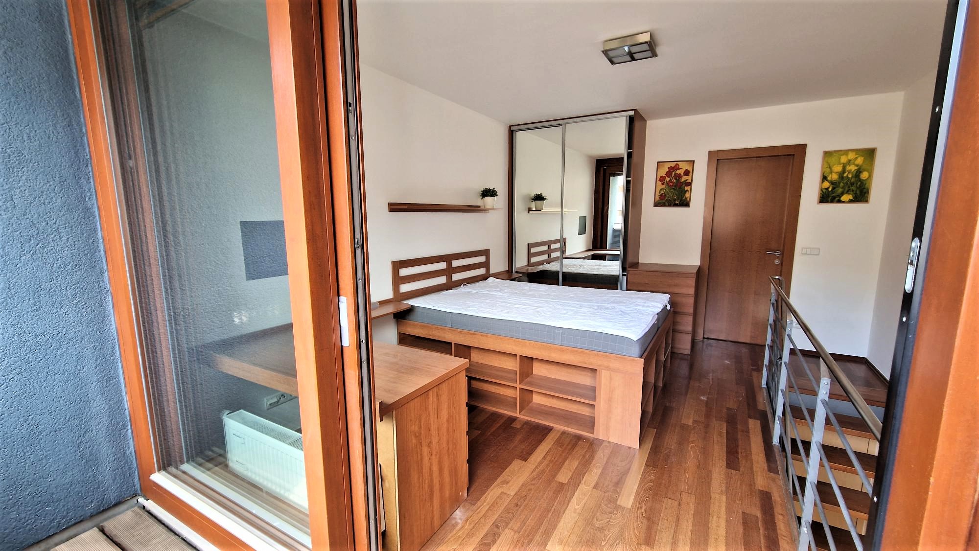 V žádané lokalitě v bytovém komplexu Rubaška v těsné blízkosti metra Vysočanská nabízíme k dlouhodobému pronájmu atypický mezonetový byt 2+kk s balkonem o celkové rozloze 52m2 , který je vybaven : kuch.linka, varná deska, horkovzdušná trouba, digestoř, mikrovlnná trouba, myčka, lednice s mrazákem, vest.šatní skříň, v patře vest.postel s úložnými prostory. Byt je umístěn v 3. a 4. patře domu s výhledem do zeleného vnitrobloku. V patře se nachází kuch.kout, který je propojen s obývací částí a v druhém patře ložnice s výstupem na terasu, koupelna s vanou a WC. Na podlahách nově vinylová podlahy, venkovní rolety. V domě recepce s 24 hod. službou, která přebírá poštu a balíky, tudíž vám odpadá běhání na poštu. Výborná dopravní dostupnost. Metro B Vysočanská , tramvaj číslo 15,19. Tento byt nabízí atraktivní bydlení nadosah přírody i občanské vybavenosti. V docházkové vzdálenosti nákupní galerie Fenix. Projekt Rubeška byl oceněn v prestižní soutěži Best of Realty a je postaven ve vysokém standartu. Vzhledem k lokalitě tuto nabídku doporučujeme. Energie a internet se převádí na nájemníka. K nastěhování ihned.