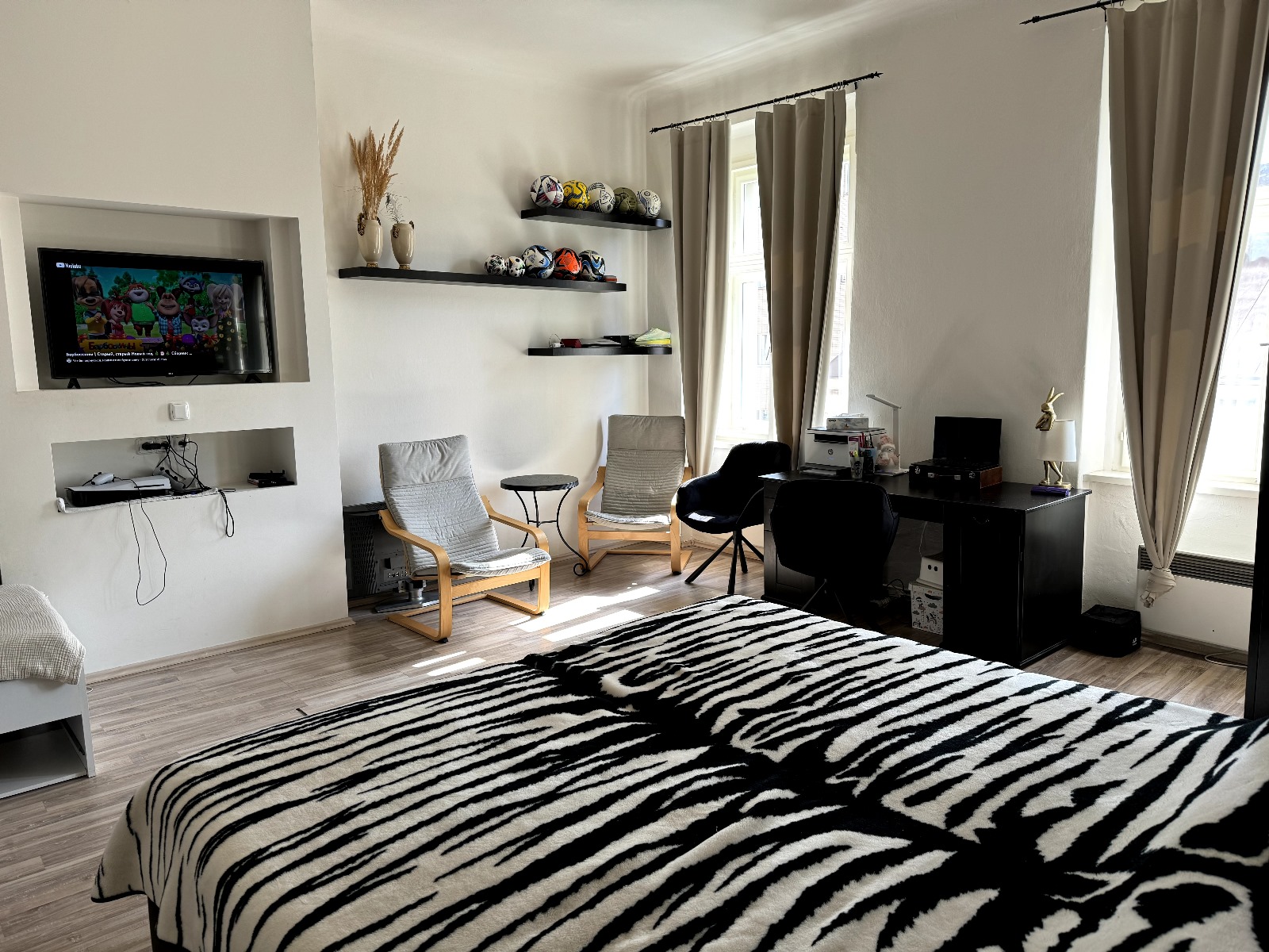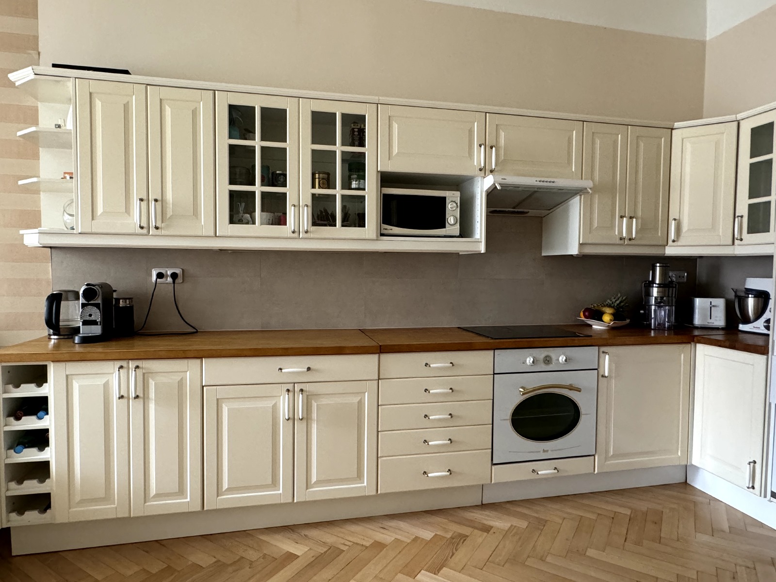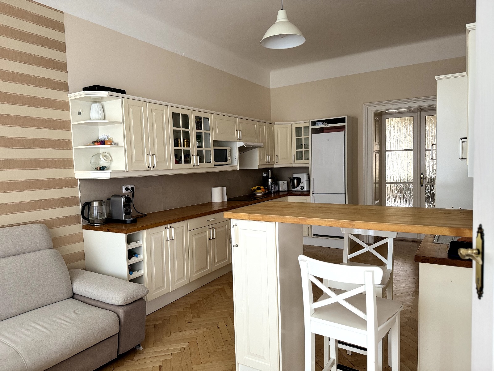 Ve velmi žádané lokalitě v těsné blízkosti metra Anděl v ul. Štefánikova nabízíme k dlouhodobému pronájmu velmi pěkný, moderní, prostorný, pavlačový cihlový byt s vysokými stropy , který prošel náročnou rekonstrukcí. Jedná se byt 2+kk se šatnou o celkové rozloze 75m2, který je částečně vybaven velice pěknou kuch.linkou s vest.spotřebiči, která odděluje obývací část, v ložnici šatní skříň, PC stolek. Velmi pěkné broušené parkety, koupelna s vanou s dvěma umyvadly, WC oddělené. Ohřev vody a vytápění bytu zajišťuje elektrokotel. Po dohodě lze odkoupit od současných nájemníků nábytek viz fotografie. Byt se nachází ve 2 p. bez výtahu, který se v průběhu příštího roku bude budovat. Velmi pěkné bydlení. K nastěhování od 1.8 - prohlídky možné. Energie a plyn se převádí na nájemníka. Okolí nabízí bohaté možnosti volnočasové aktivity, nedaleko obchodní centrum Nový Smíchov. Veškerá občanská vybavenost v místě. Vzhledem k lokalitě tuto nabídku doporučujeme. Nutno vidět.