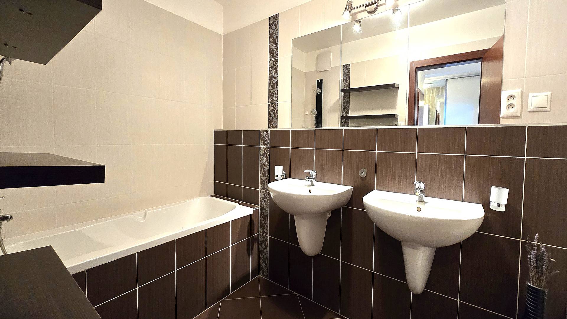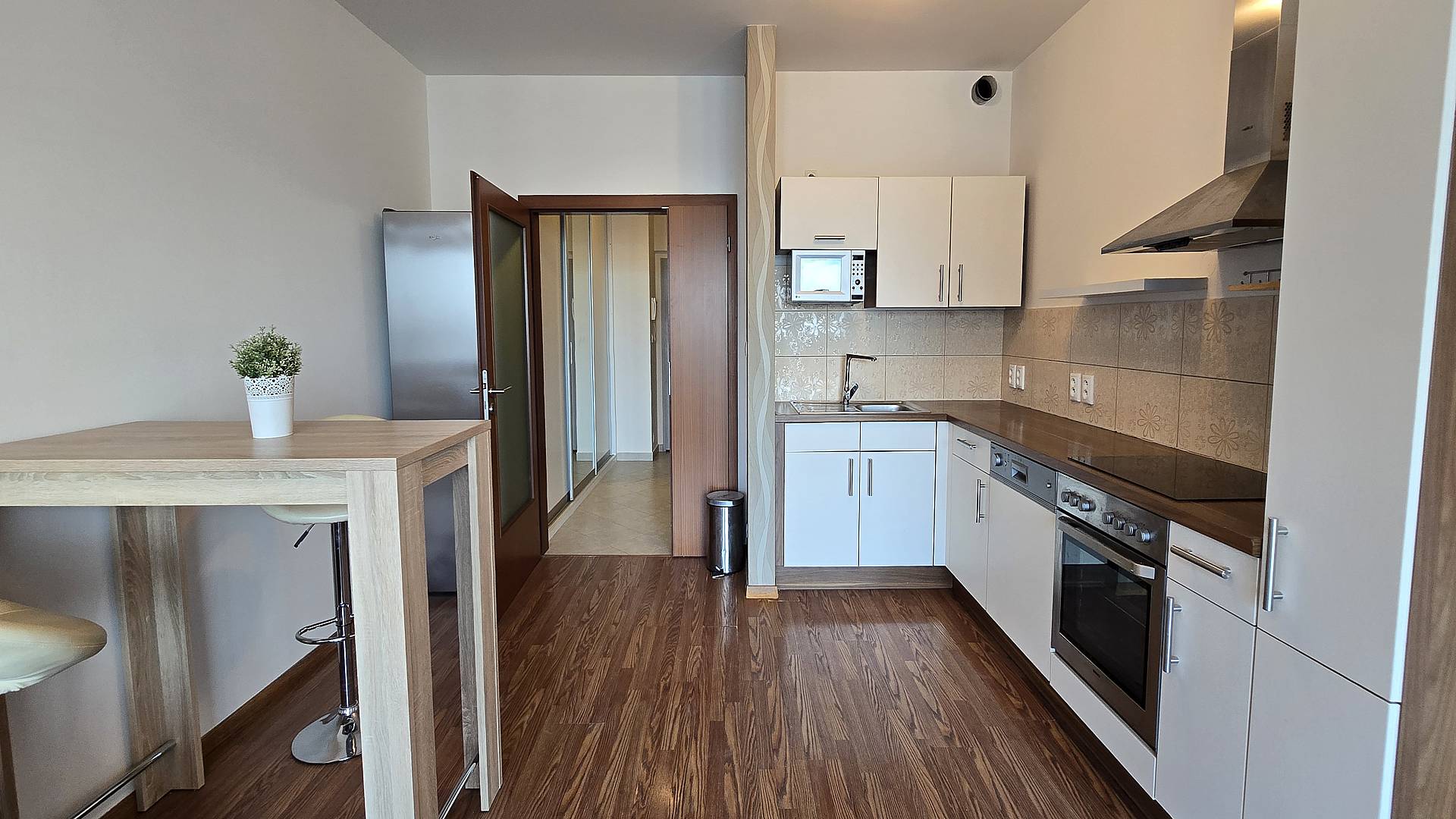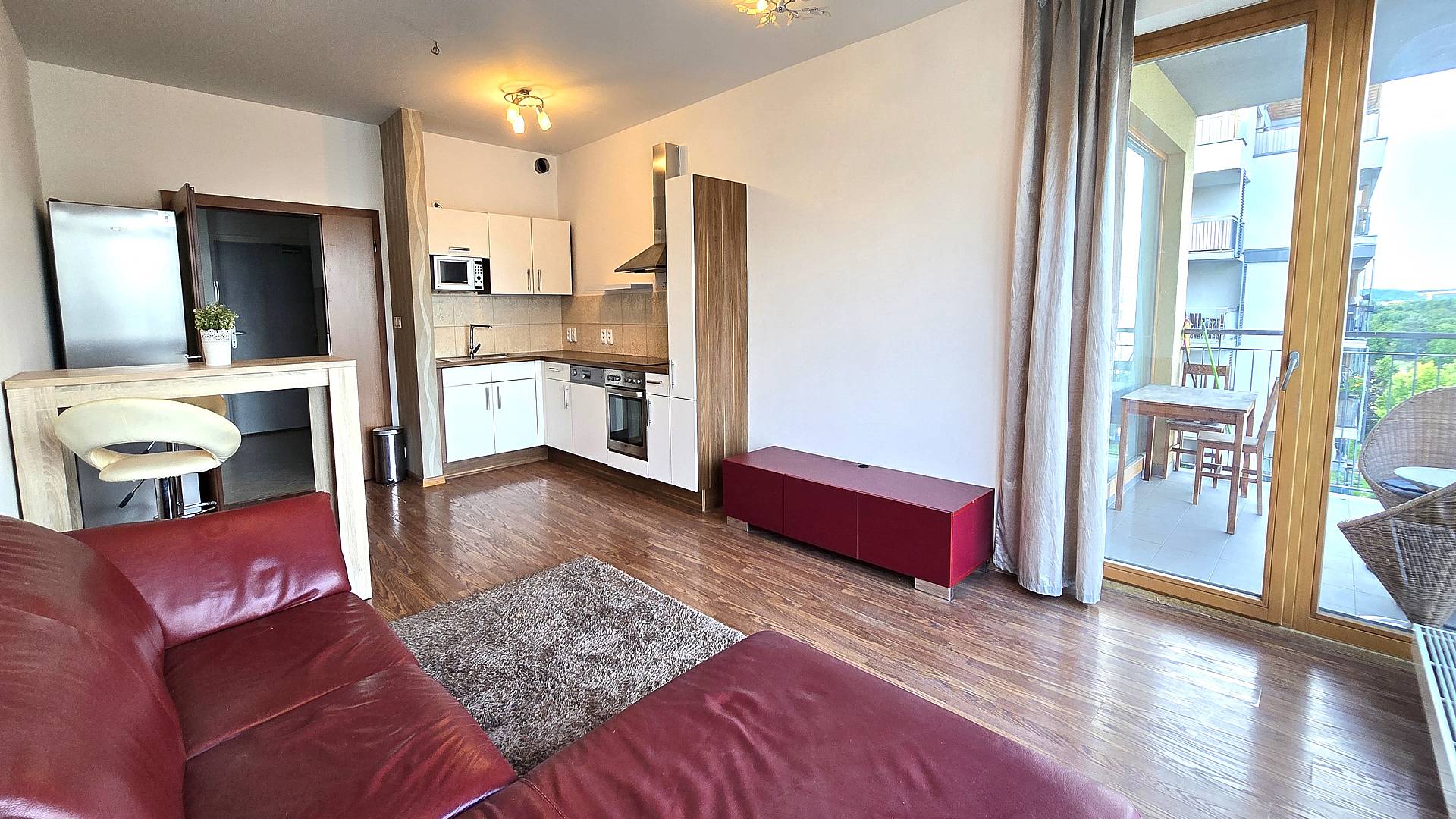 Ve velmi krásném bytovém komplexu Zelené město na Praze 9 v těsné blízkosti Kaufland - Jarov nabízíme k dlouhodobému velice pěkný nadstandardní byt 2+kk s terasou ( 11m2) , komorou. Byt je plně vybaven včetně všech spotřebičů ( myčka, lednička, pračka, sušička ) - mimo TV.. Při vstupu do bytu vcházíte do prostorné chodby kde je zabudovaná velká vest.skříň, dále pak koupelny s vanou s dvěma umyvadly, samostatné WC a komory, kde se nachází pračka se sušičkou. V zadní části chodby se nachází ložnice s výstupem na terasu. Dominantou je krásný obývací pokoj s krásným výhledem z kterého také vcházíte na terasu. K bytu náleží sklep. Po dohodě lze pronajmout parkovací stání v garáži za cenu 2.000,- Kč. V těsné blízkosti veškerá občanská vybavenost. Spoustu sportovního vyžití. Ihned k nastěhování. Jistota ve výši dvou nájmů. Energie se převádí na nájemníka. Vzhledem k lokalitě a ceně tuto nabídku doporučujeme.