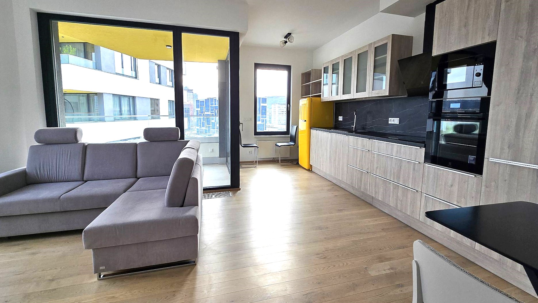 Ve velmi pěkné lokalitě v těsné blízkosti metra Křižíkova v novém moderním bytovém projektu od Sekyra Group nabízíme k dlouhodobém pronájmu zcela nový nový moderní byt 2+kk s lodžií, komorou, sklepem v ulici Sokolova, Praha 8 Karlín - Rohanský ostrov. Byt je velice moderně vybaven : kuch.linka s vestavěnými spotřebiči, včetně ledničky, jídelní stůl, sedací souprava, postel s vestavěnými skříněmi, komorou v bytě, která lze využít i jako šatna, koupelna se sprchovým koutem. Na oknech jsou instalovány elektrické venkovní žaluzie, které umožňující úplné zatemnění s krásným výhledem na Rohanský ostrov, který zajišťuje přímo z terasy, kde můžete mít krásné posezení. K bytu náleží prostorný sklep o výměře 5 m2. Po dohodě lze pronajmout 2x parkovací stání za 2.500,- Kč a další sklep,