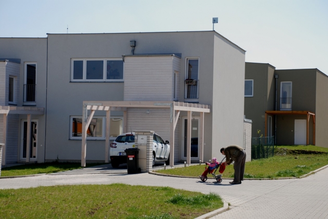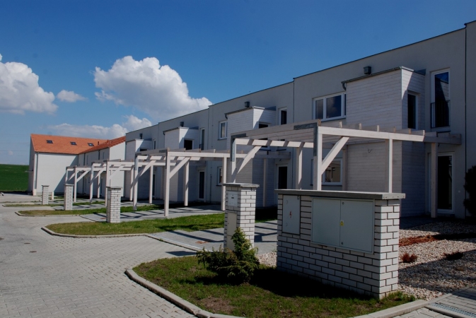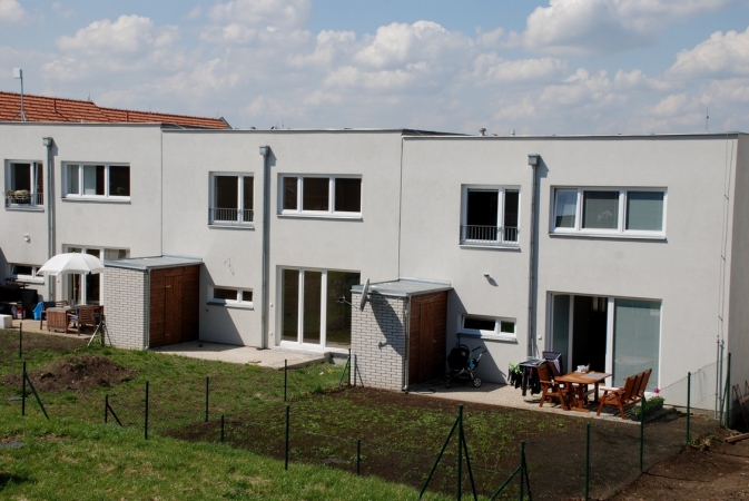 Ve velice pěkné a klidné lokalitě na Praze - východ v obci Jenštejn se vybudovalo 90 třípodlažních a dvoupodlažních moderních ŘRD typu A,B,D,E a F. Dům typu F je třípodlažní s terasou v 2 patře a předzahrádkou. Ke každému domu je parkovací stání přímo před domem. V přízemí domu se nachází WC + kuch.kout s prostornou obývací částí a výstupem na terasu + předzahrádku. V prvním podlaží domu je vybudovaná koupelna s vanou + WC a dvě ložnice. V druhém patře se nachází prostorný pokoj, který jde rozdělit na dvě další ložnice. Pokoj má výstup na pěkný terasu. Vybavení domu:plastová okna a vstupní dveře, které jsou opatřeny bezpečnostním dvojsklem a celoobvodovým bezpečnostním kováním. Vnitřní dveře jsou dřevěné, dýhované, plovoucí podlahy + keramická dlažba v koupelně a WC, samostatný kotel na ohřev vody i topení.